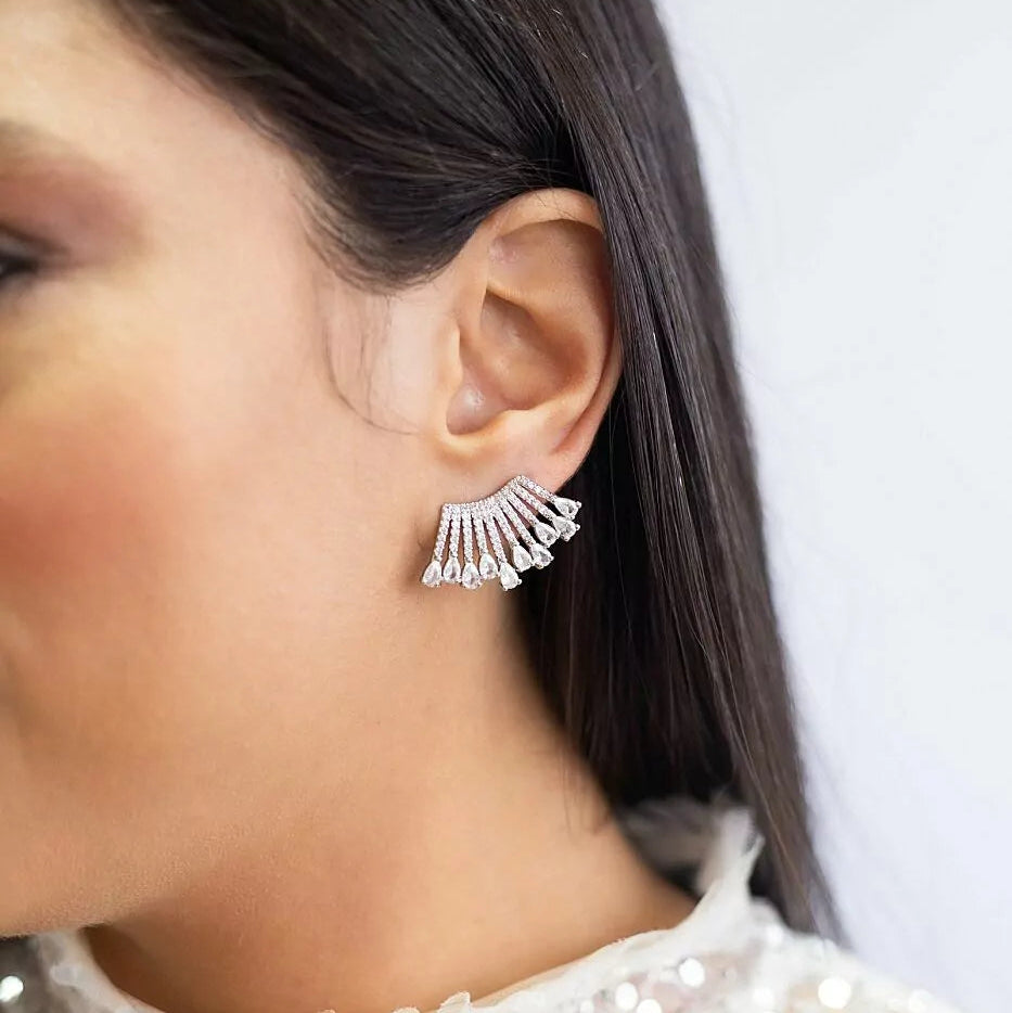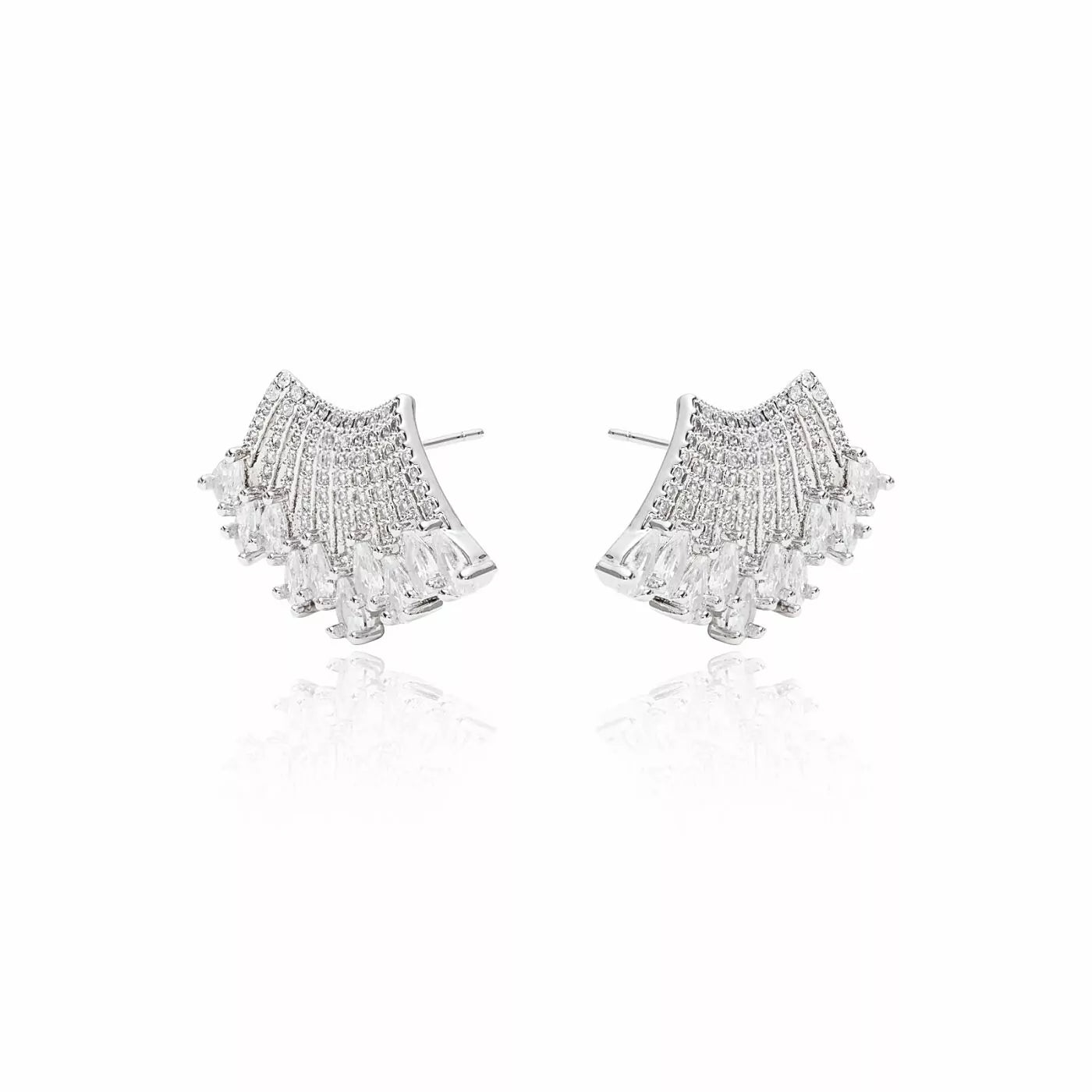 Pendiente delicado y chic en forma de leque. Una Semijoya exclusiva con baño de rodio perfecta para una fiesta o boda.