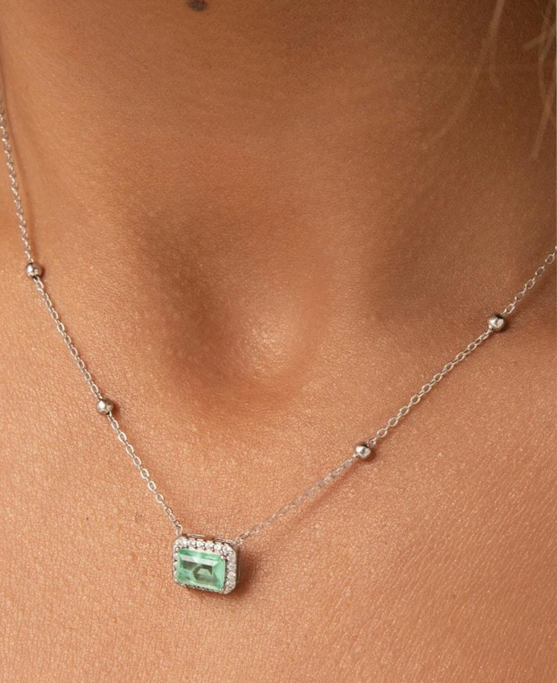 Conjunto Colar esmeralda colombiana + pingente em banho de ródio