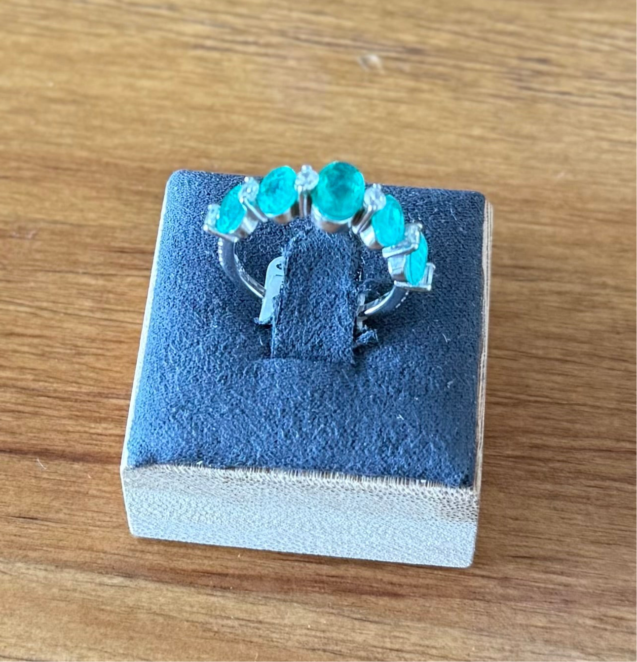 Anillo Media Alianza con 5 piedras Safiras y 6 mini circonitas blancas en plata 925.