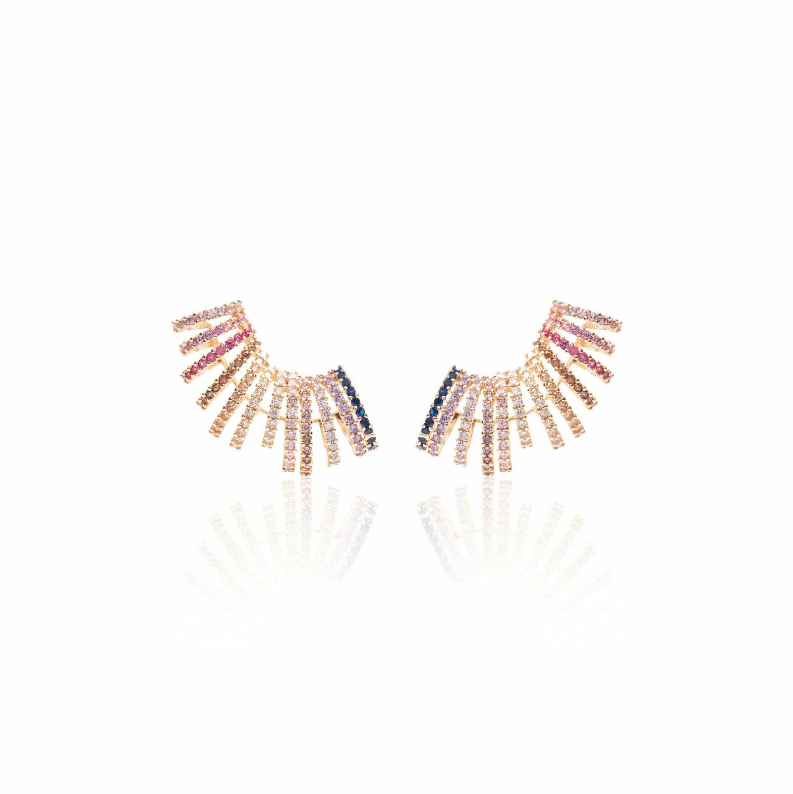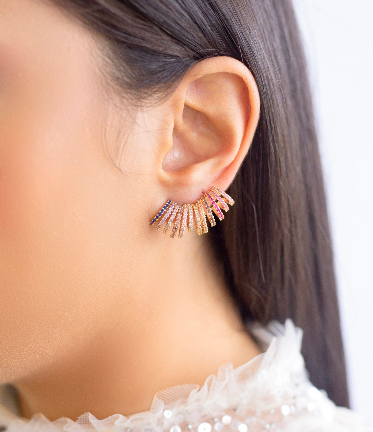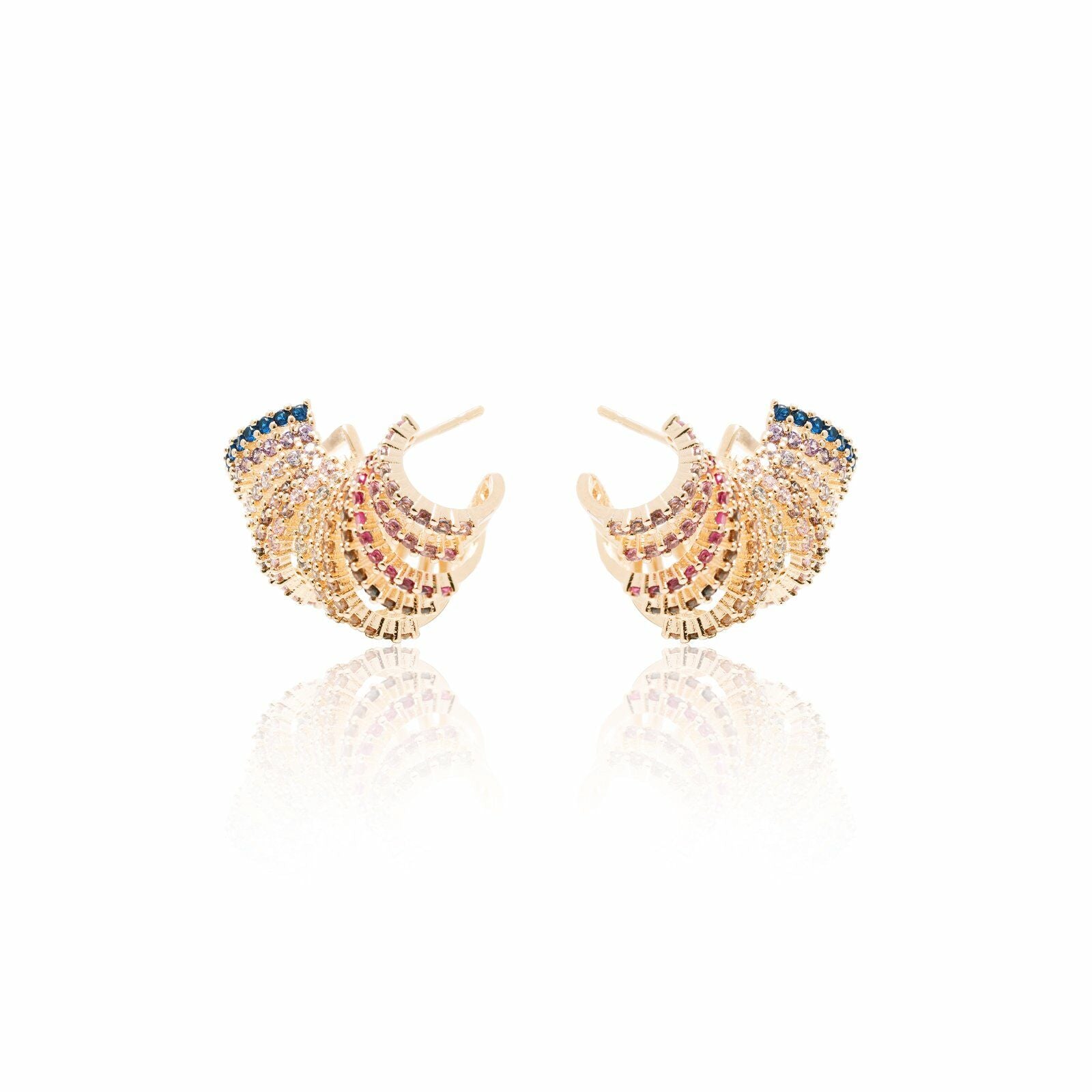 Pendiente formas ondas delicado con cristales coloridos citrino, turmalina London en baño de oro18k.