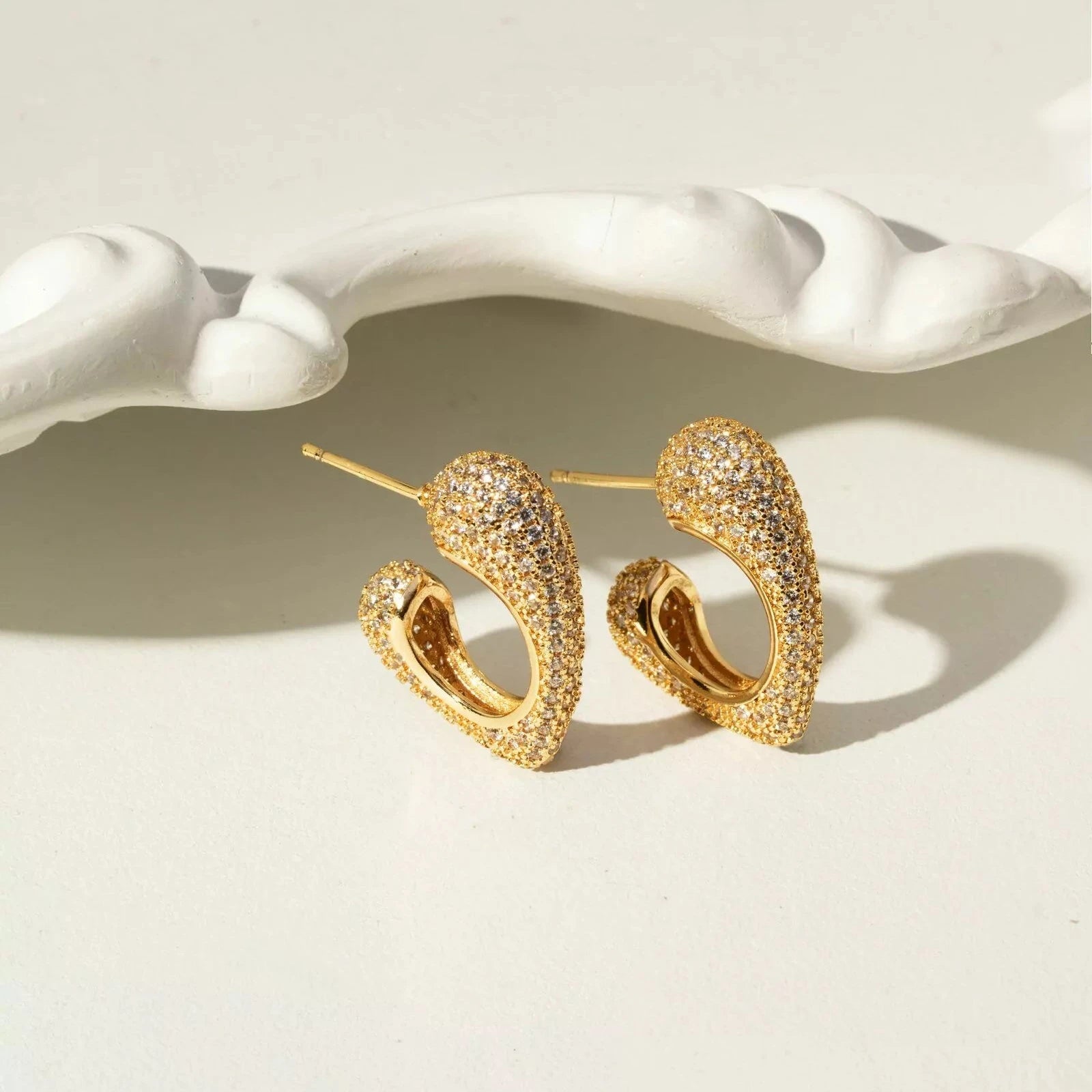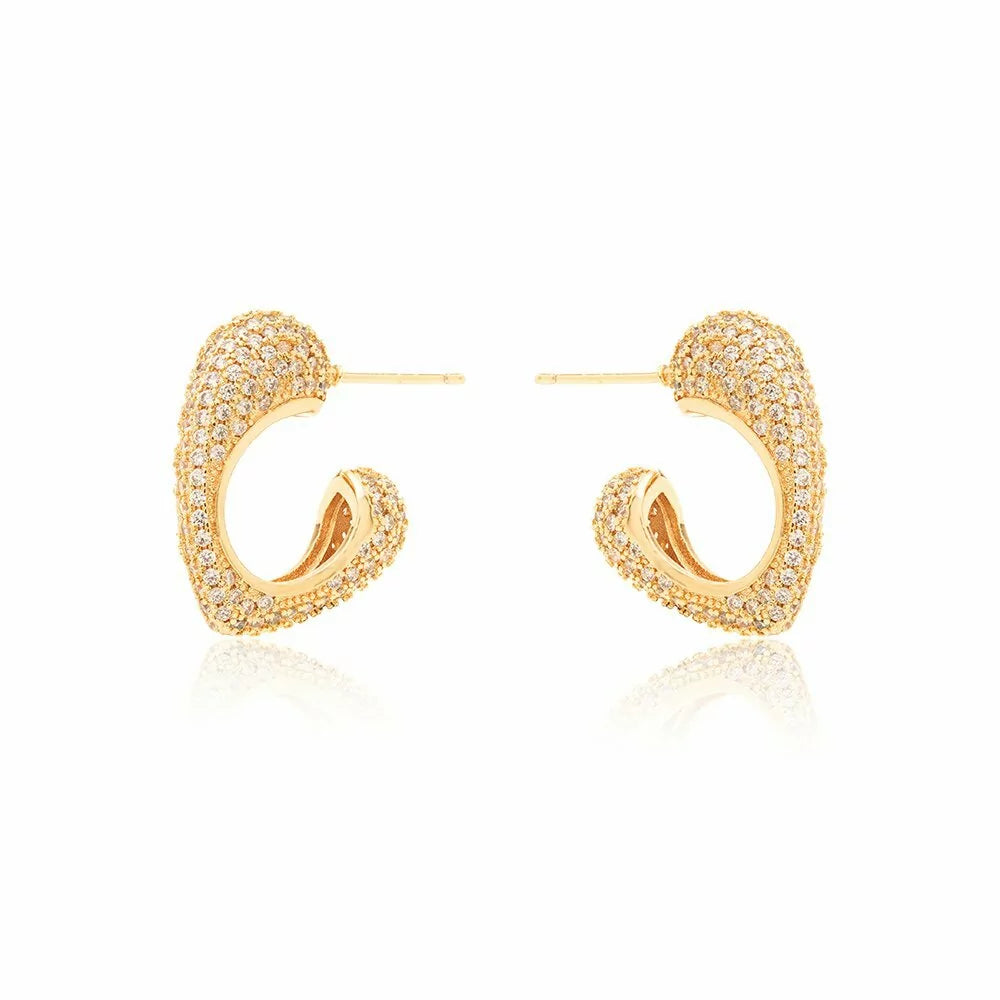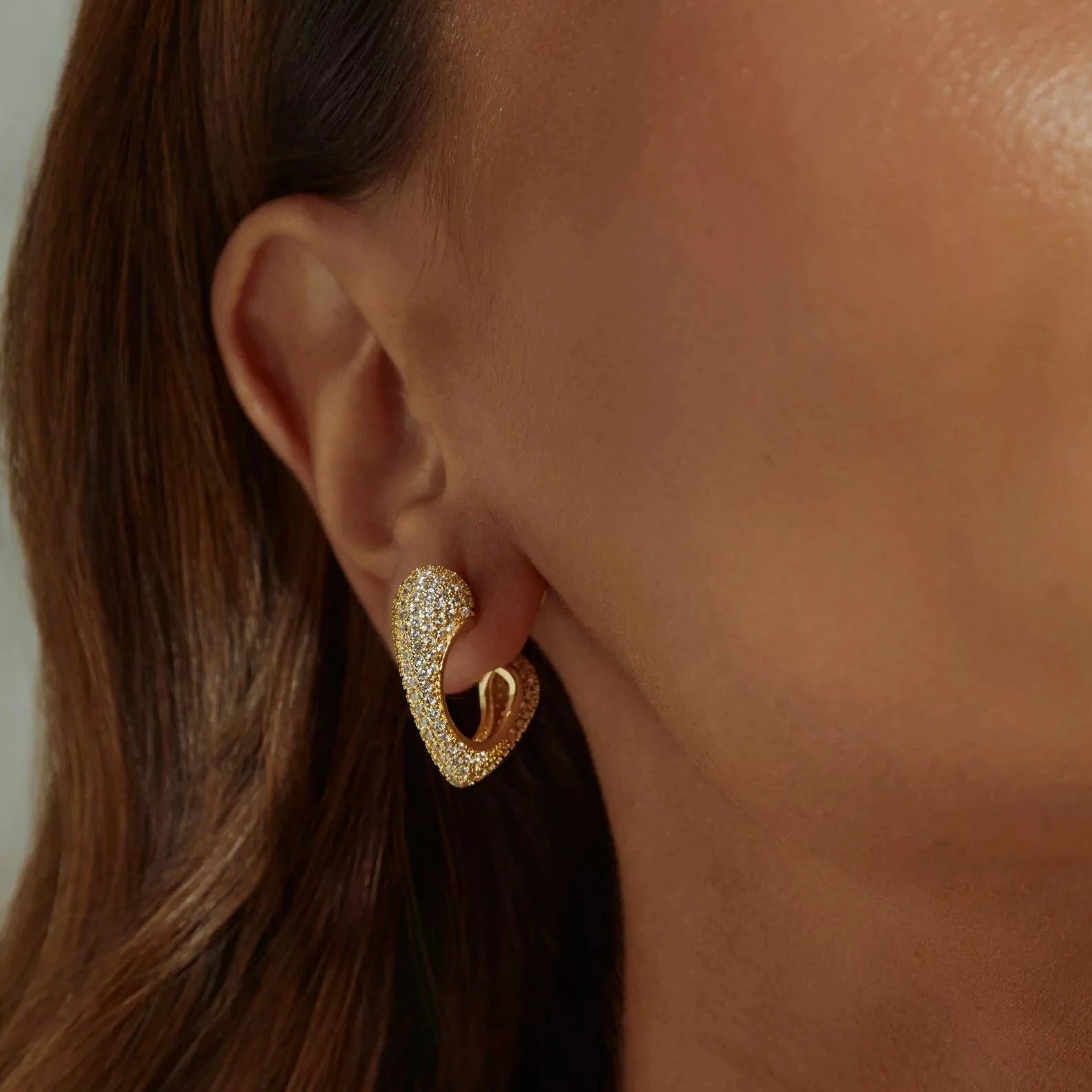 Pendiente Argolla corazón circonitas en baño de oro 18k.