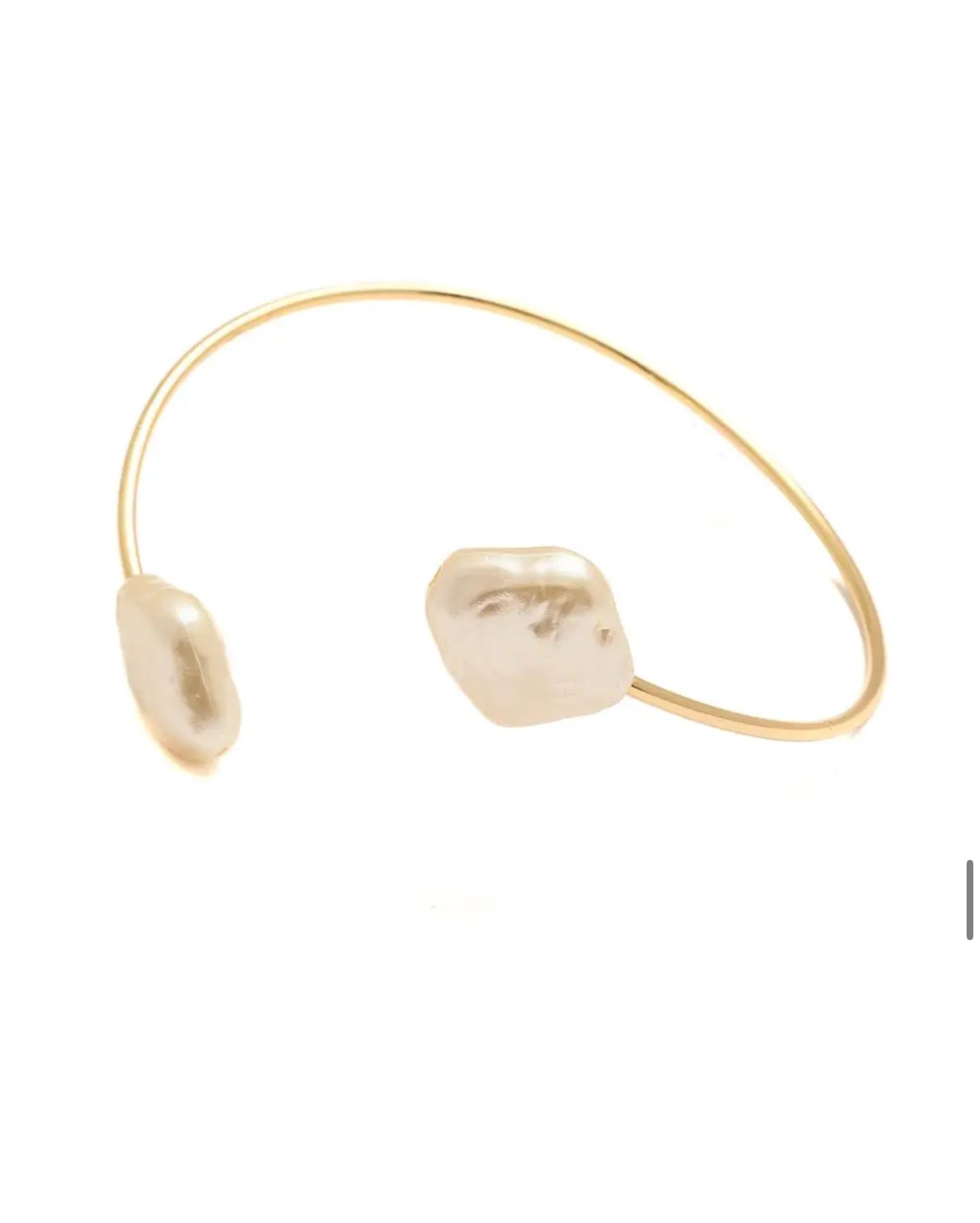 Bracelete perla irregular super fashion y delicado en baño de oro 18k