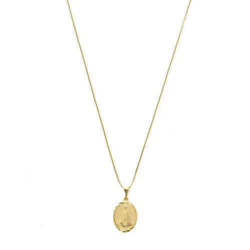 Collar medalla Nuestra Señora das Gracias delicado en baño de oro 18k.