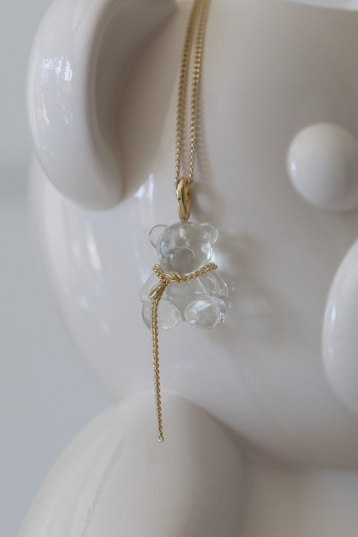 Collar largo Oso largo en resina acrílica blanco o Rosa en baño de oro 18k .