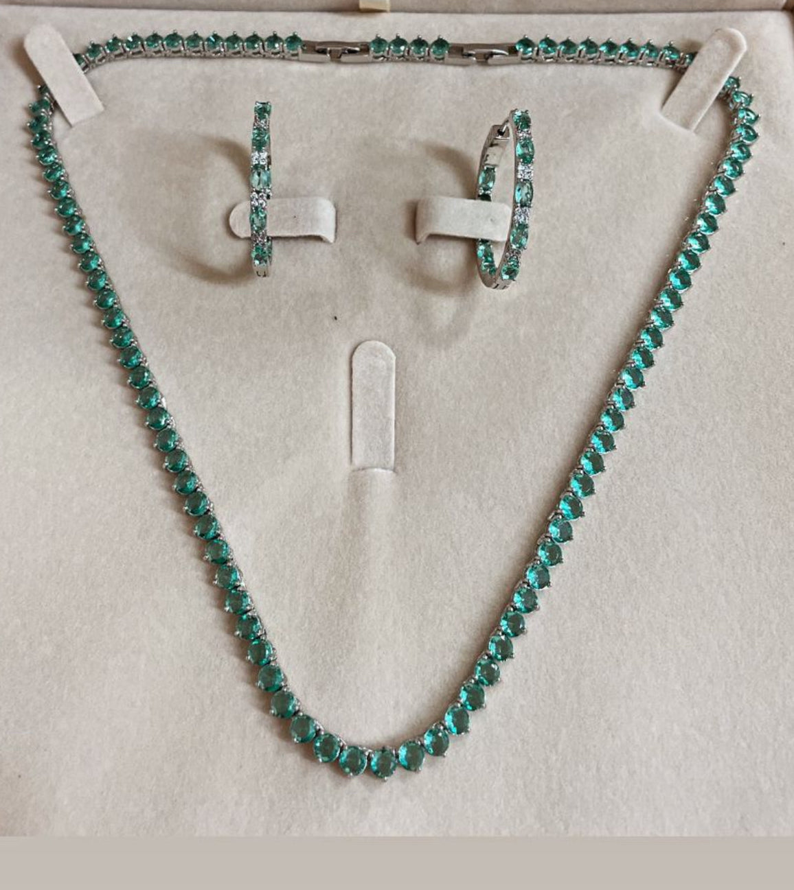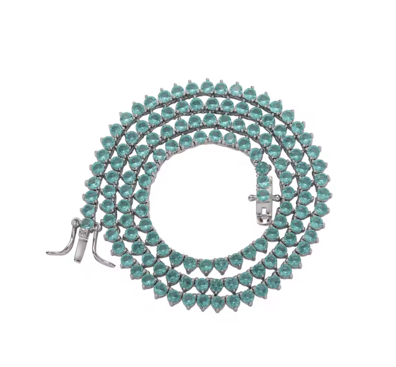 Collar Riviere corazón turmalina Paraíba en baño de rodio. Un collar de alta calidad. 42cm