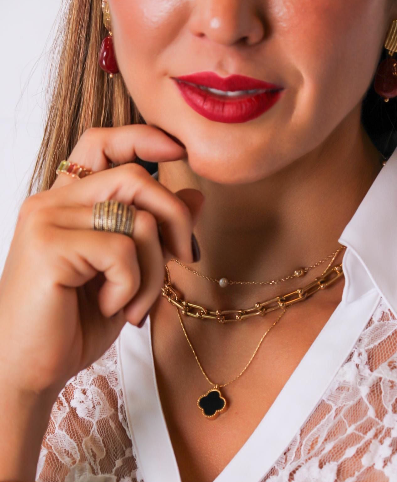 Se puede hacer Conjunto con el pendiente trébol Está super de moda.
