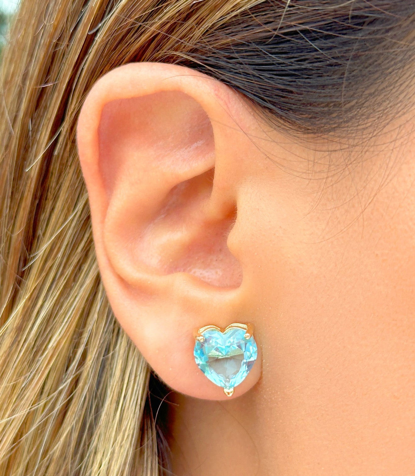 Pendientes en Corazón con piedras fusion turmalina, Azul London, Esmeralda Colombina y rubi en baño de oro 18k.
