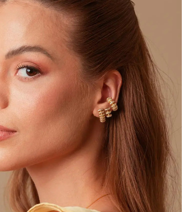 Earcuff Piercing minimalista con circonitas blancas en baño de oro 18k