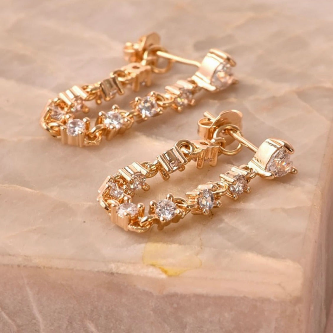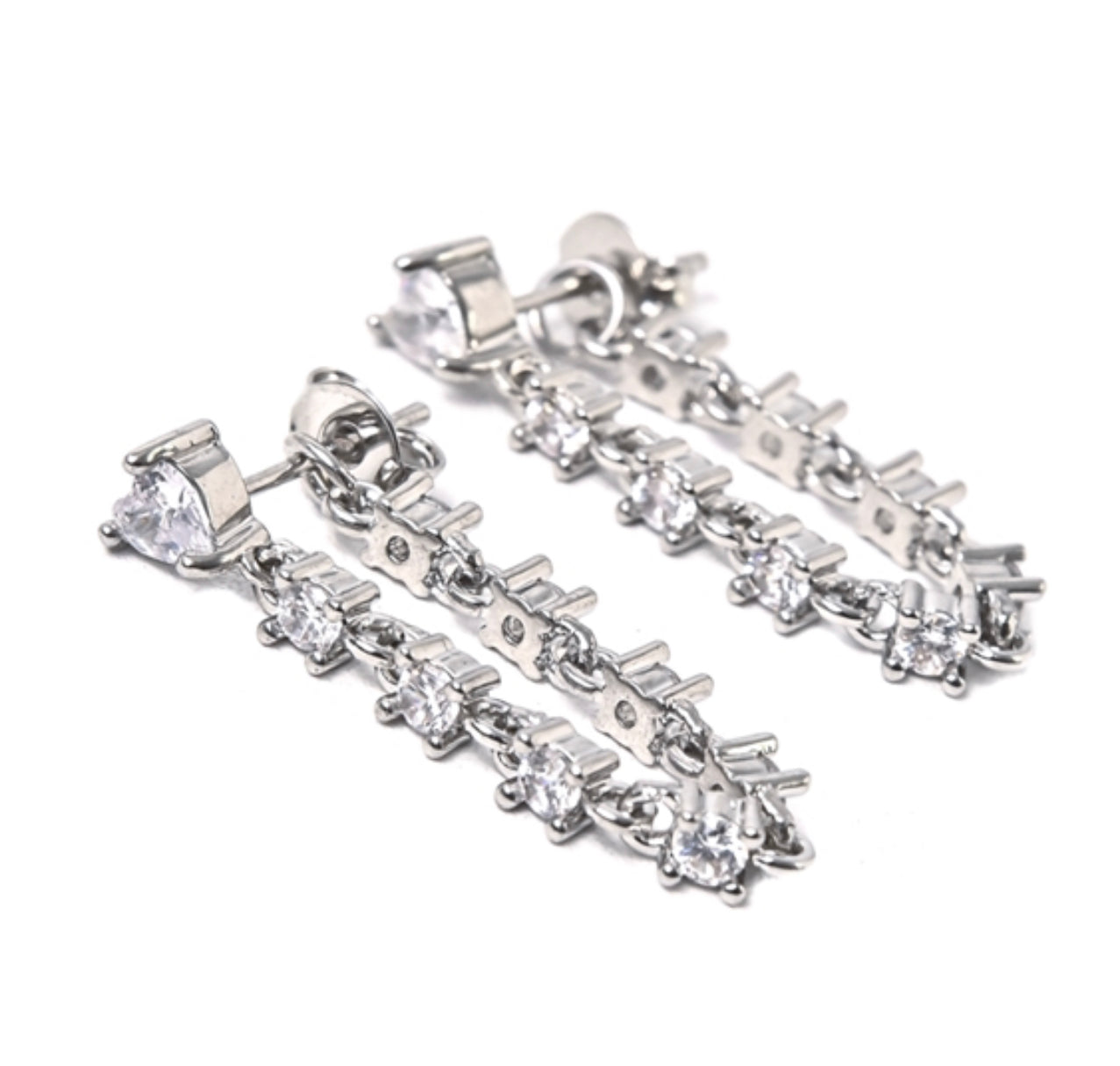 Pendiente Riviere con circonitas en corazón y redondas en baño de oro 18k
