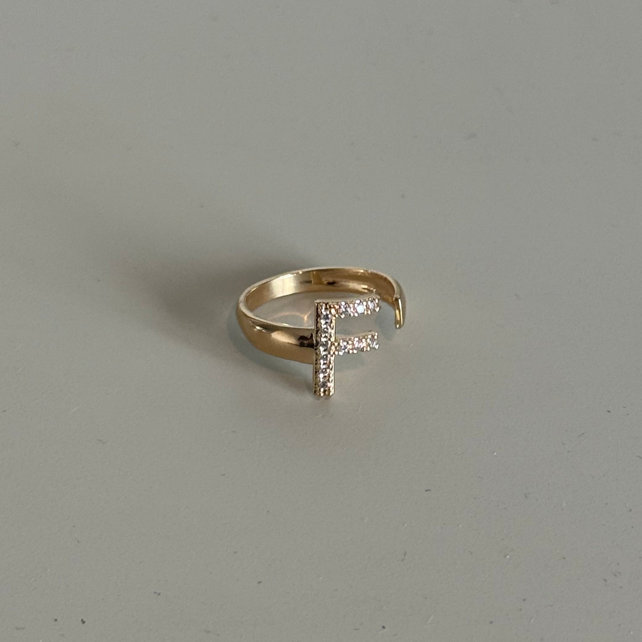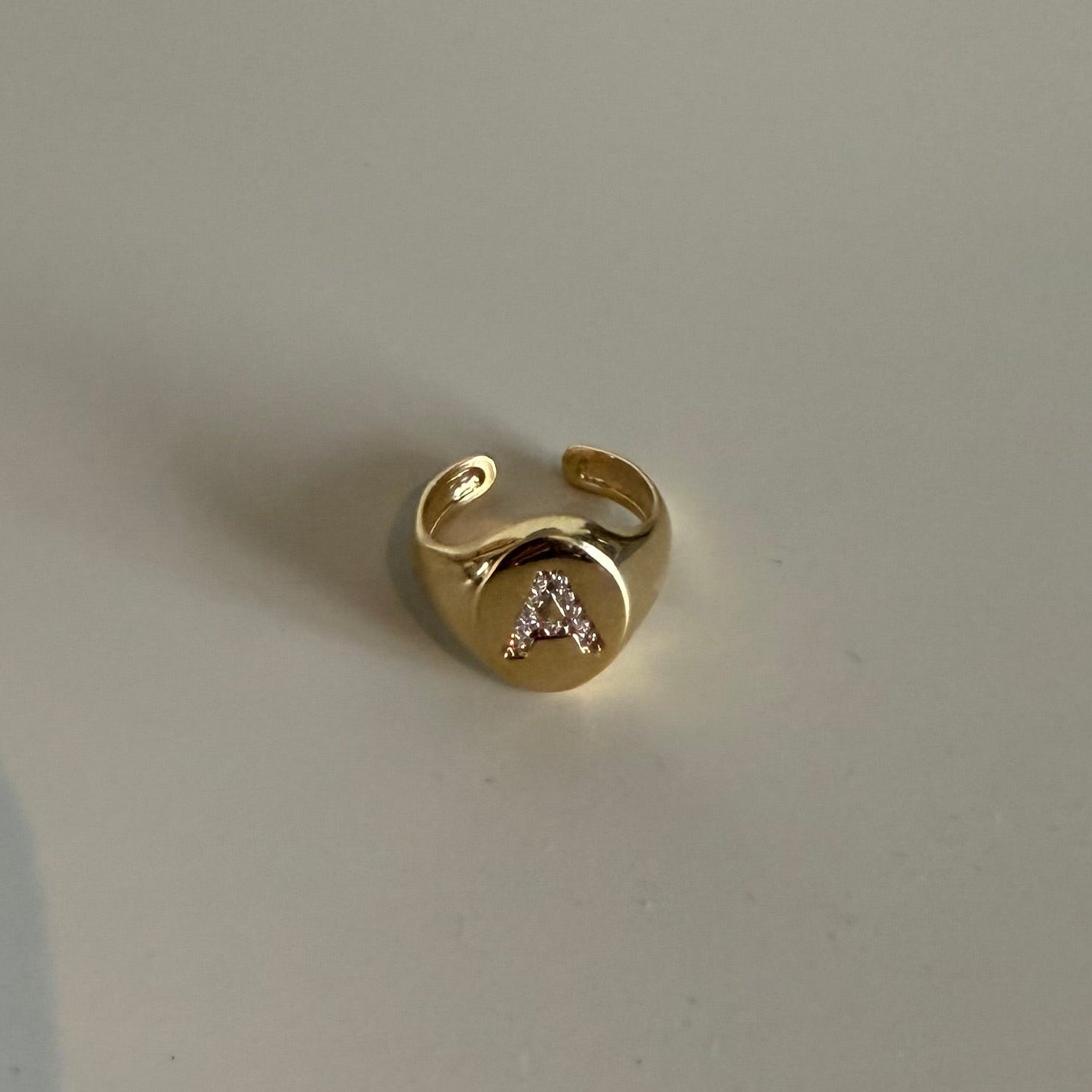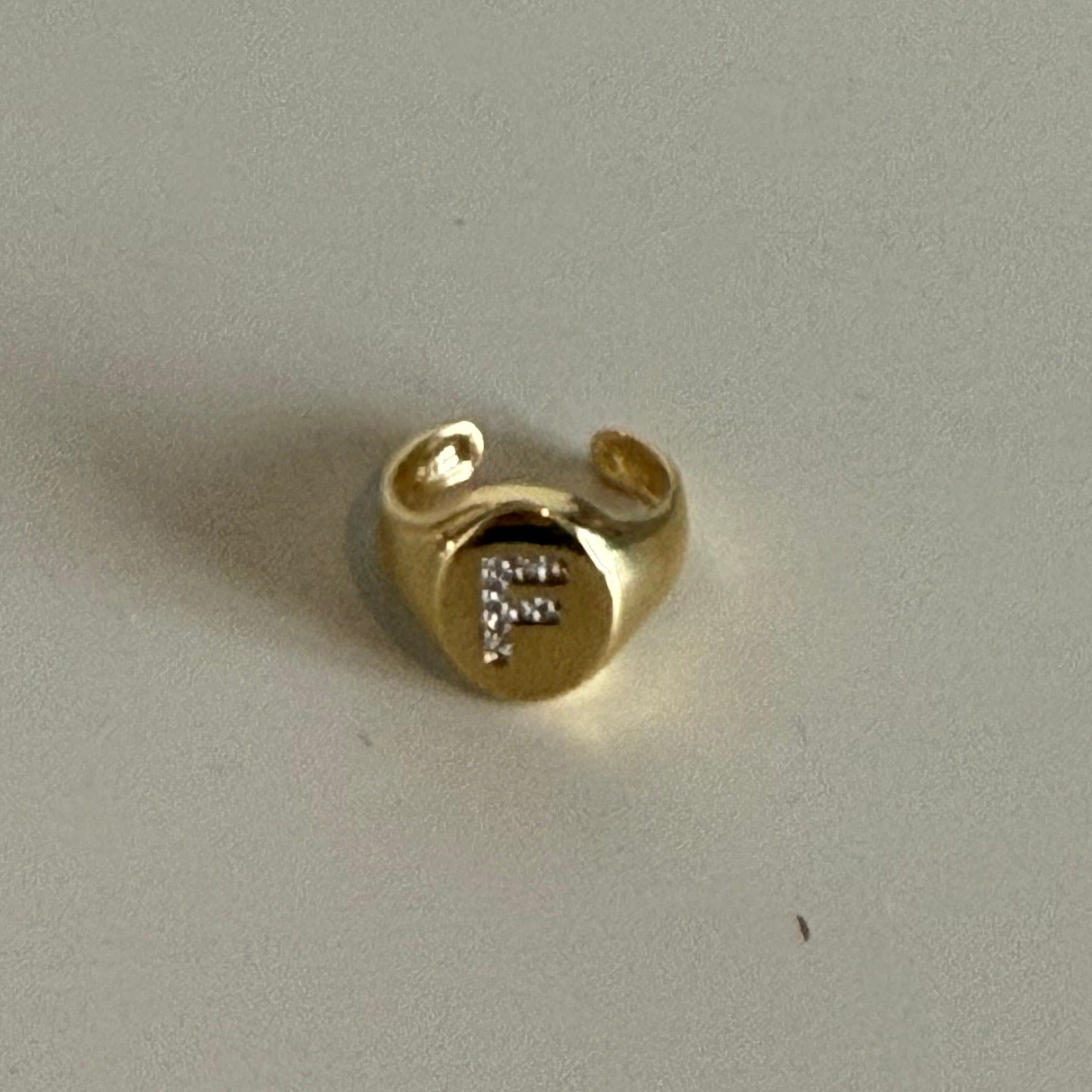 Anel LETRA para usá-lo no pequeno dedo no banho de oro18k. Uma semijoia de alta qualidade.